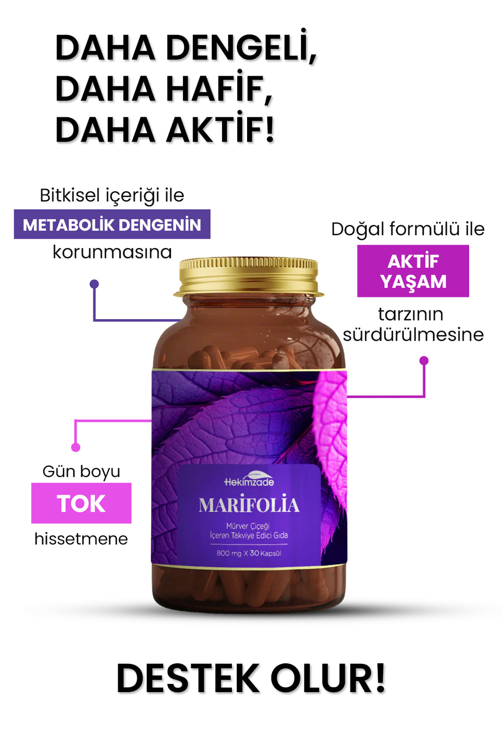 MARIFOLIA, bitkisel kaynaklı 10 spesifik bitkisel yağı/tozu/ekstreyi bir araya getiren formüle sahiptir. Ürünümüz bitkisel içeriklidir. Ürünümüzde Mürver Çiçeği, Zeytin Yaprağı, Kitre, Sandaloz Sakızı, Huş Ağacı, Kekik, Yeşil Çay, Mısır, Kiraz Sapı ve Rezene bulunmaktadır. Ürünün içeriğinde yer alan bitkisel yağlar/ekstreler geçmişten günümüze geleneksel olarak aktif olarak kullanılan bileşenlerdir.