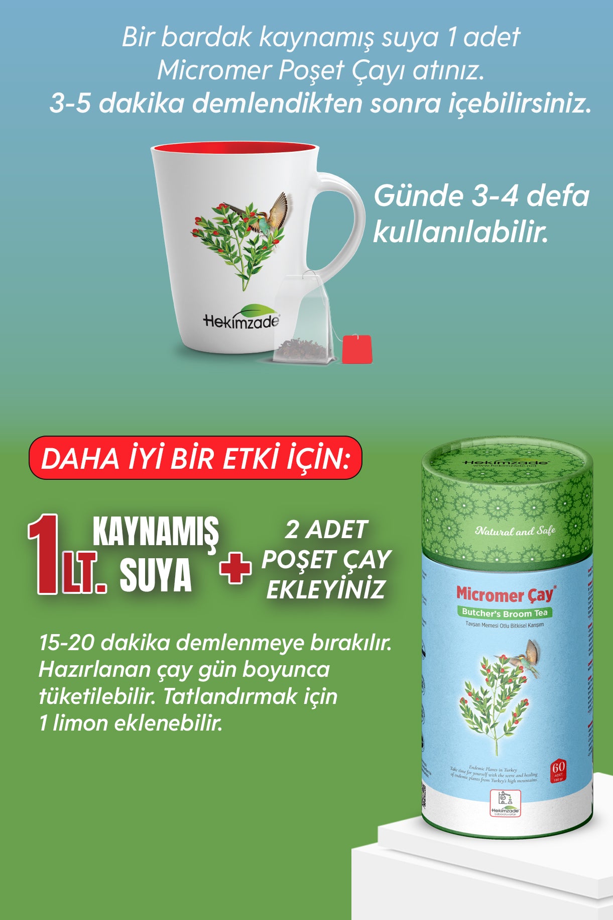 Tavşan Memesi, At Kuyruğu, Ölmez Çiçeği, Isırgan ve Kayışkıran içeren bitkisel karışımdır.